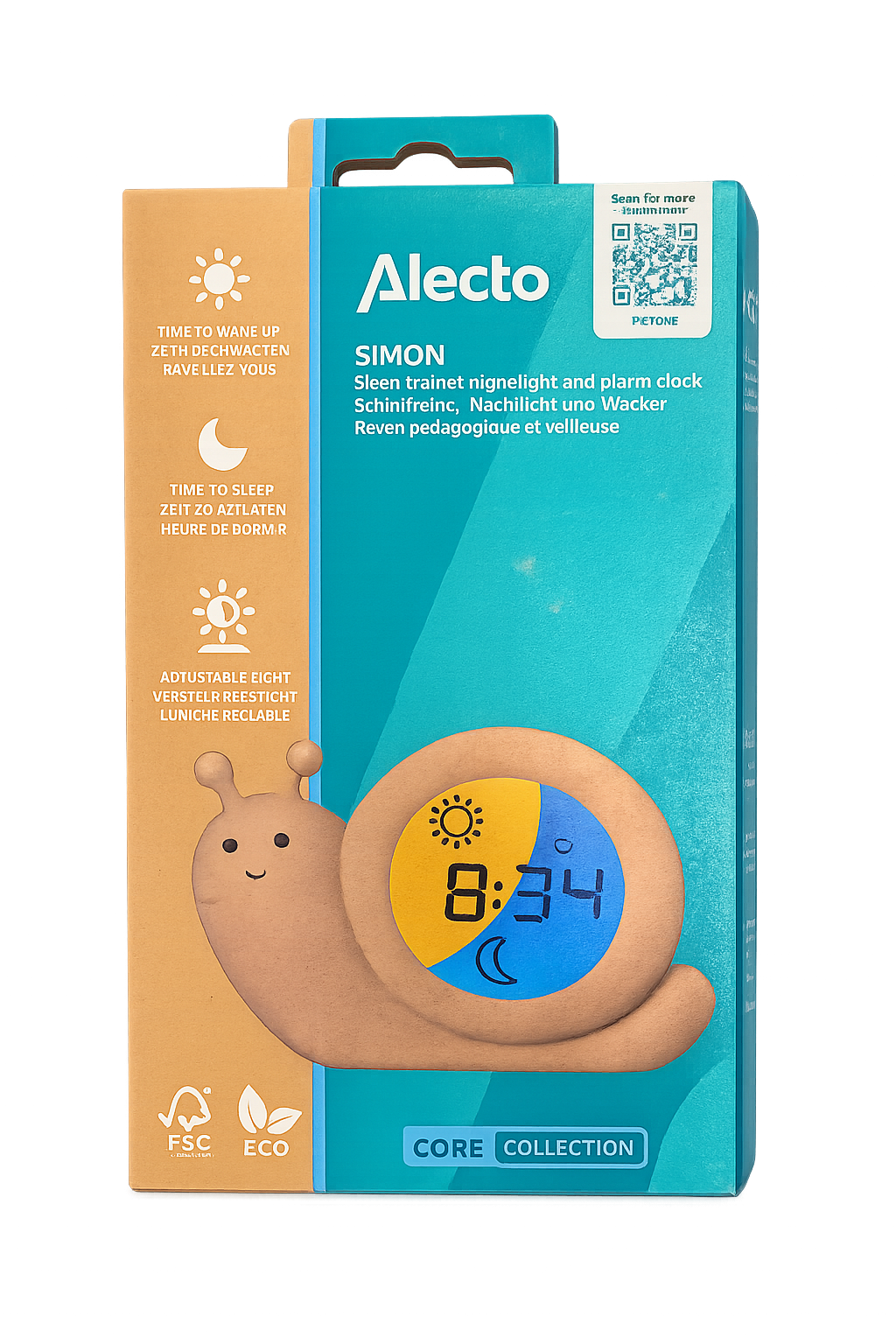 Alecto BC110BE SIMON - Slaaptrainer, nachtlampje en wekker, slak, taupe