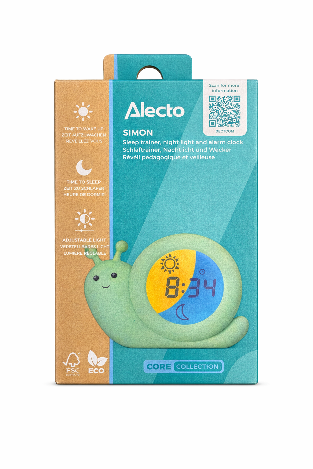 De Alecto BC110GN SIMON is daarmee niet alleen een praktische wekker, maar ook een speelse en educatieve hulp voor kinderen om gezonde slaapgewoonten aan te leren.