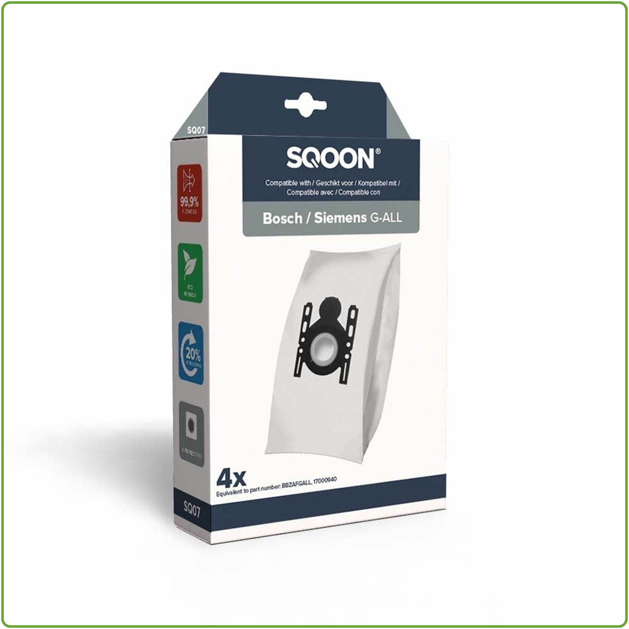 Met deze set van vier Sqoon stofzuigerzakken bent u verzekerd van een langdurige, schone en krachtige werking van uw stofzuiger. Een betrouwbare keuze voor elk huishouden.