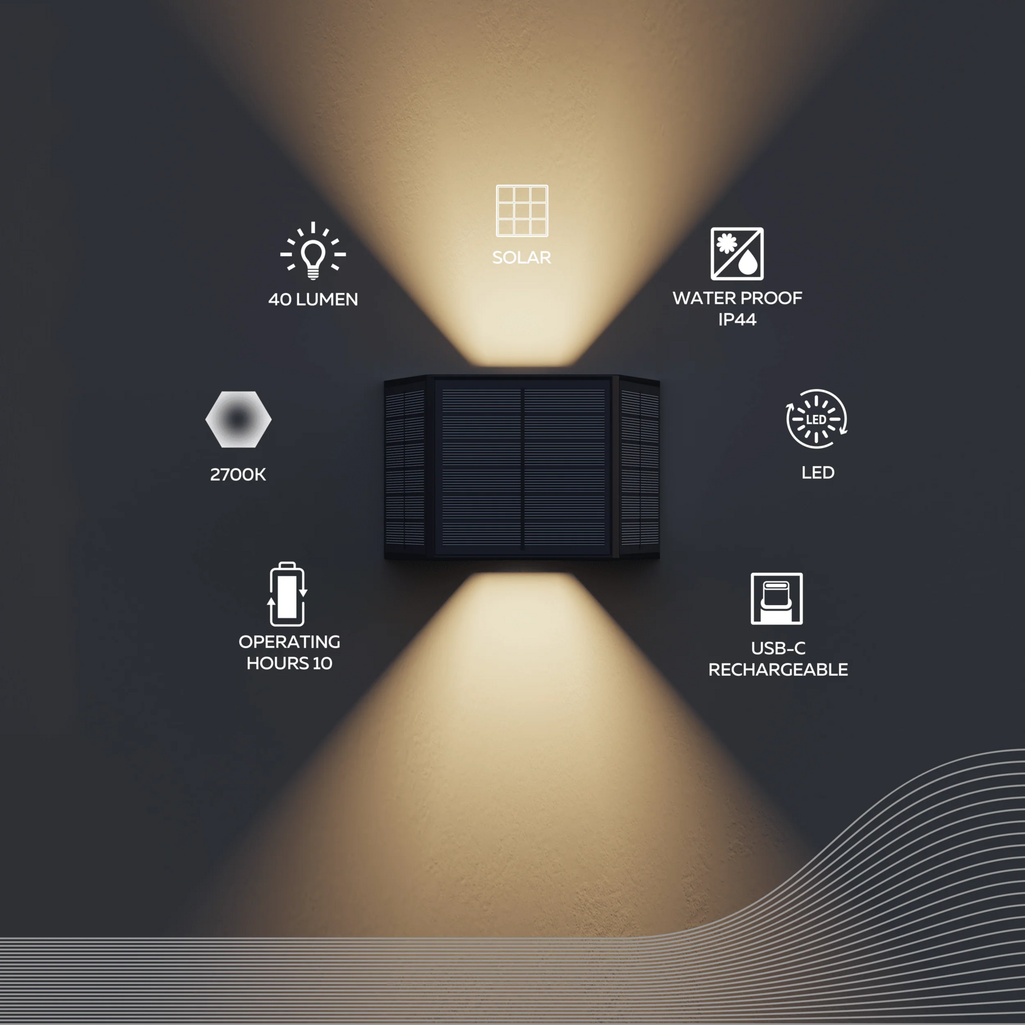 Caserta Outdoor Rechargeable Solar Up and Downlight Adjustable SMD 0.5W 40LM 2700K Zwart