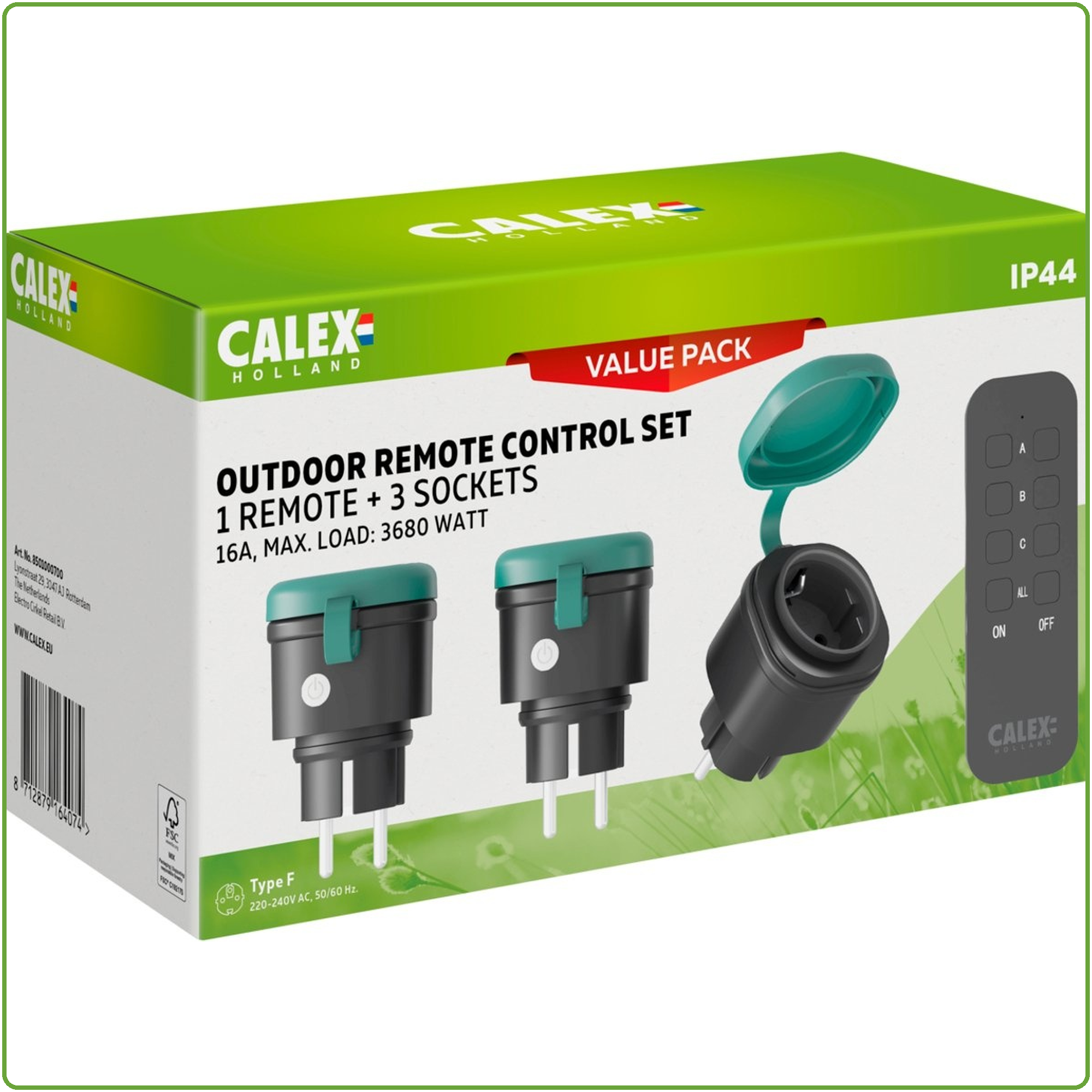 Calex Outdoor Remote Control Set 1 remote + 3 sockets 16A,3680W