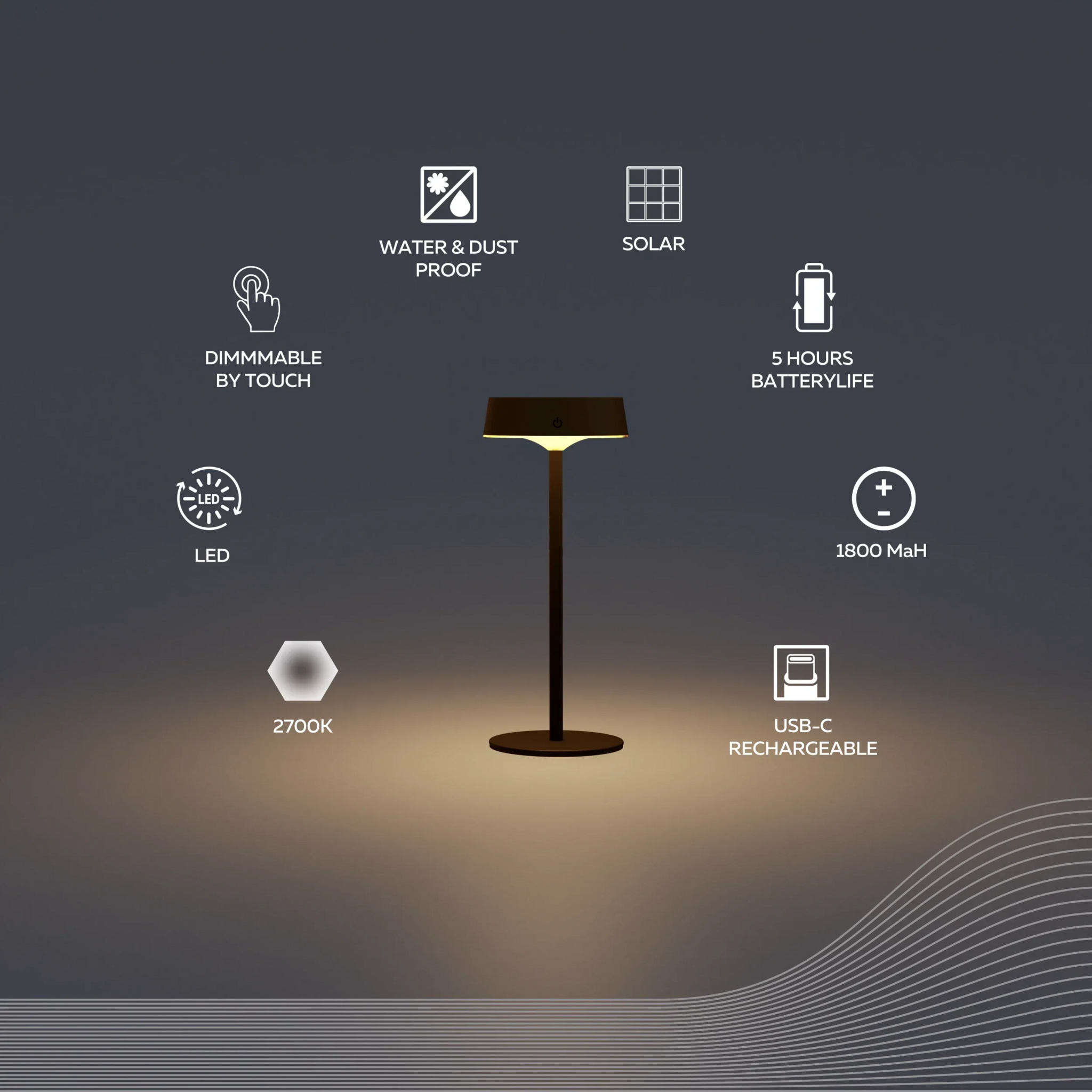 Parma Outdoor Rechargeable Solar Tafellamp SMD 2.2W 150LM 2700K Dimbaar Zwart